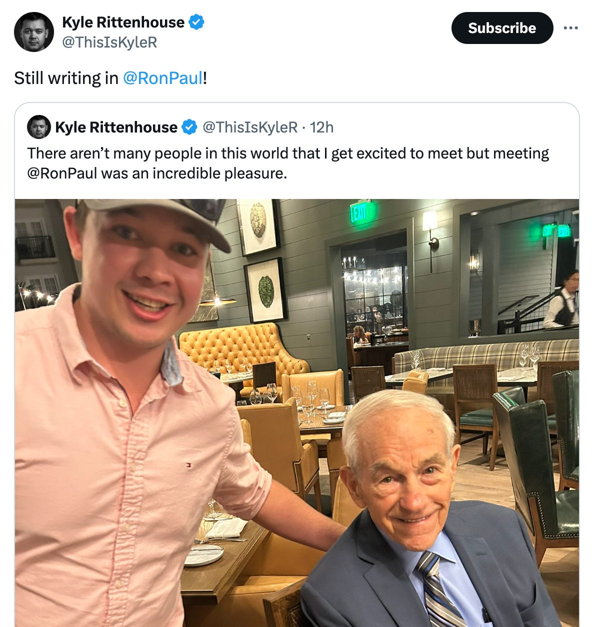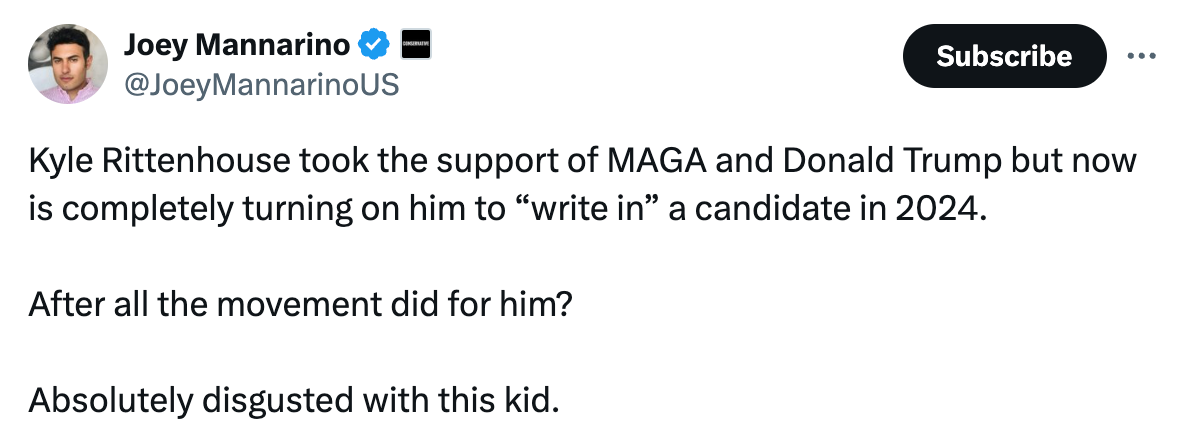 After the Kenosha riots, it was the entire Right that decided to make Kyle Rittenhouse a celebrity and a thought-leader. He met with President Donald Trump, he was interviewed by Tucker Carlson, and he went on a country-wide college speaking tour.