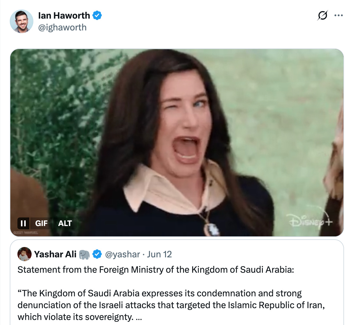 The second loser is the Islamist regime of Iran, whose decades-long ambition to eradicate Israel was knee-capped by Trump and Israel. In just a few years, it went from receiving pallets of cash thanks to the feckless Obama administration to staring into the pit of rubble that used to be its nuclear program. Even its supposed allies — you know, Russia, China, and other countries who were going to ignite a global war in defense of Iran — were nowhere to be seen. Other power players in the region, most notably Saudi Arabia, were either silent or offered meme-worthy faux-condemnations before popping the champagne, as if they would actually decry the generational knee-capping of their greatest adversary in the Middle East.